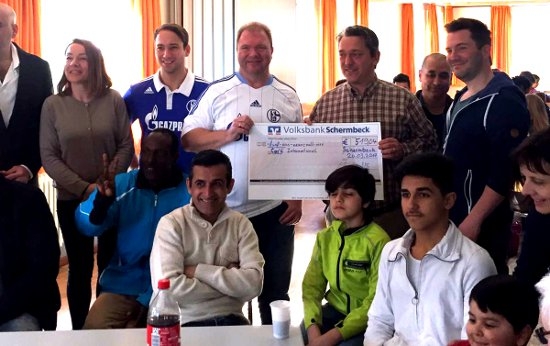 Die Freude war am Sonntag 19.03. bei den Veranstaltern des "Cafe International" im Pfadfinderhaus groß. Erhielten sie doch das Zeckengeld des Schalke Fanclubs " Königsblaue Schermbecker" in Höhe von 519,04 Euro. "Wir möchten den Schermbecker Bürgern und den ansässigen Flüchtlingen ein multikulturelles Miteinander bei Kaffee und Kuchen und somit eine weitere Möglichkeit der Integration ermöglichen", so Geschäftsführer Pico Anders. Für das Cafe gibt es nämlich so gut wie keine Zuschüsse. .